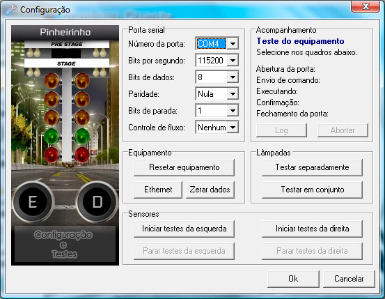 Especificação dos parâmetros para comunicação e testes de todas as funções do pinheirinho.